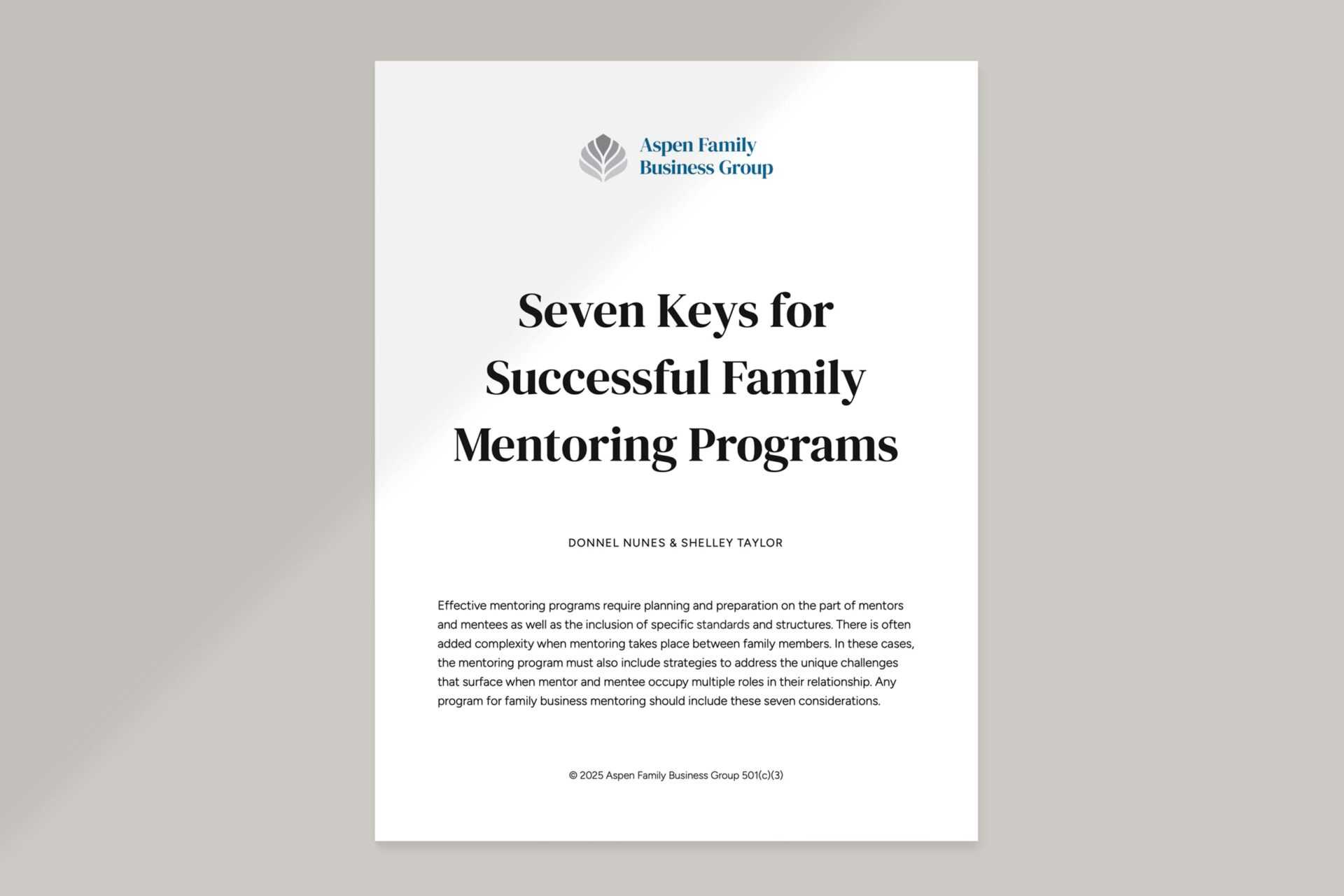 Family business mentoring is unique since participants need to manage family roles and their various roles in the family and business systems. Through both their research and their experience with families, Donnel Nunes and Shelley Taylor identified three distinct areas of mentoring need in family business. When families and businesses follow these steps, they position their mentoring programs for successful outcomes. Well-run programs benefit the mentees, mentors, and the enterprise.